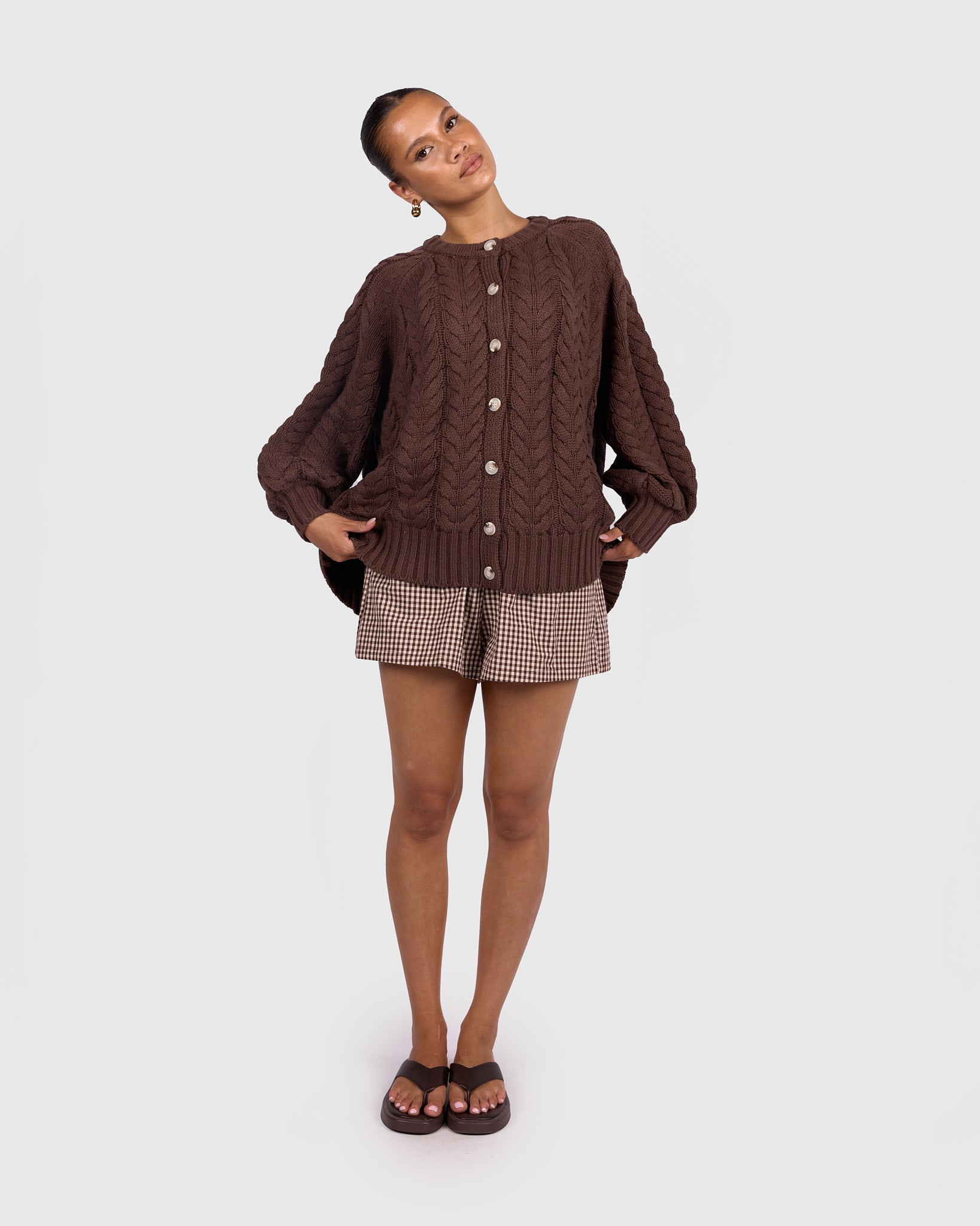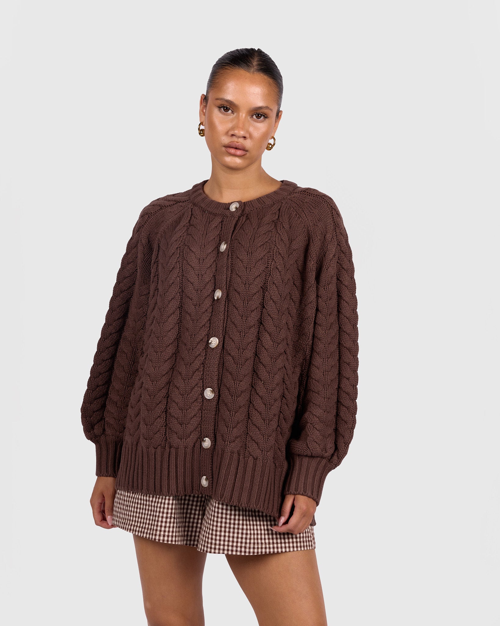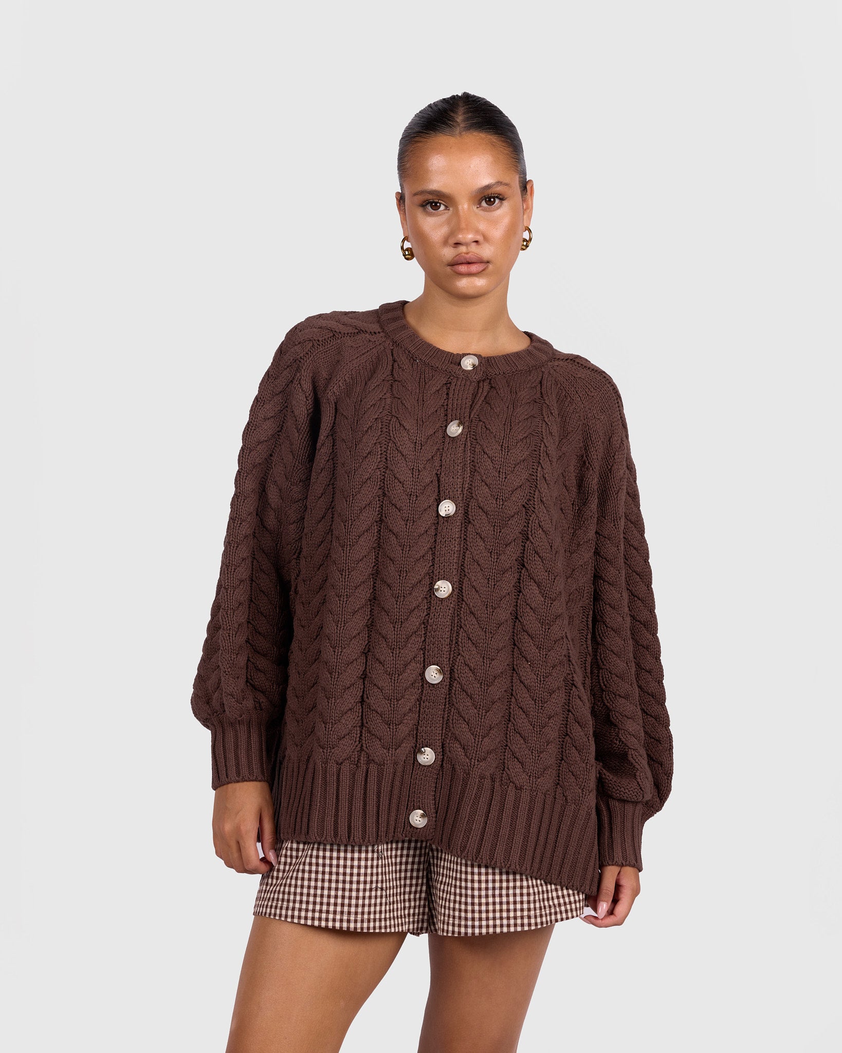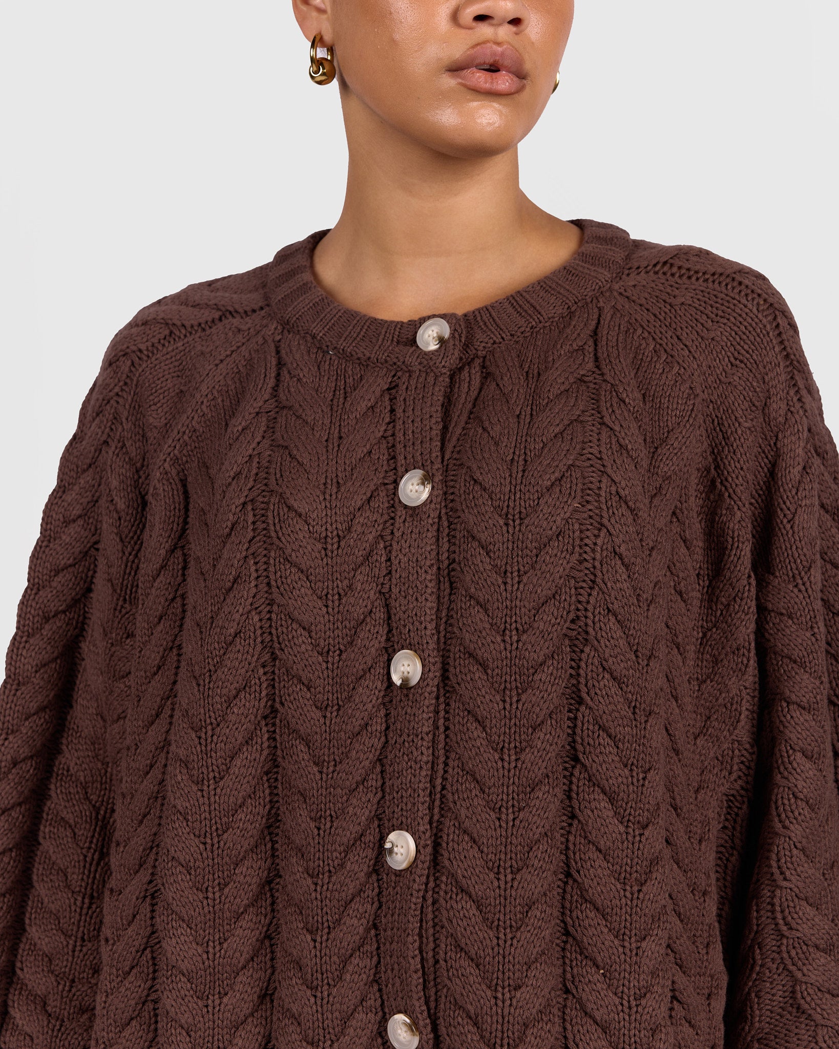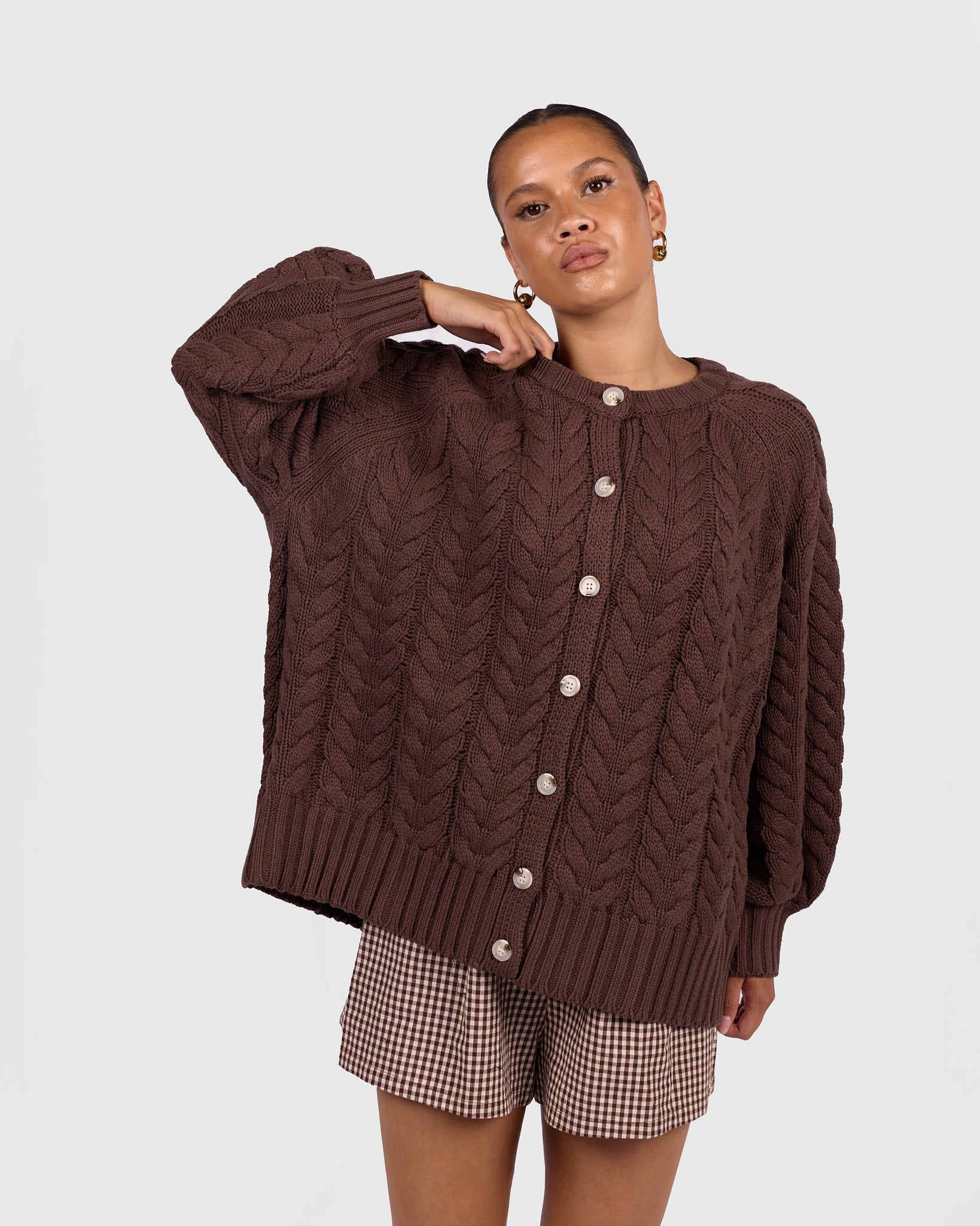 The Georgia Knit Cardi in Chocolate is your cosy, throw-on layer that makes getting dressed feel easy again. Designed in a soft cotton blend knit with an oversized fit, it is made for comfort without sacrificing your everyday style.