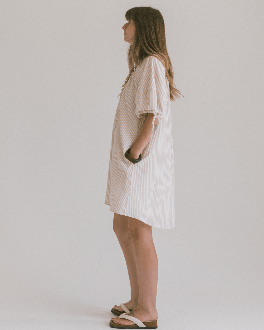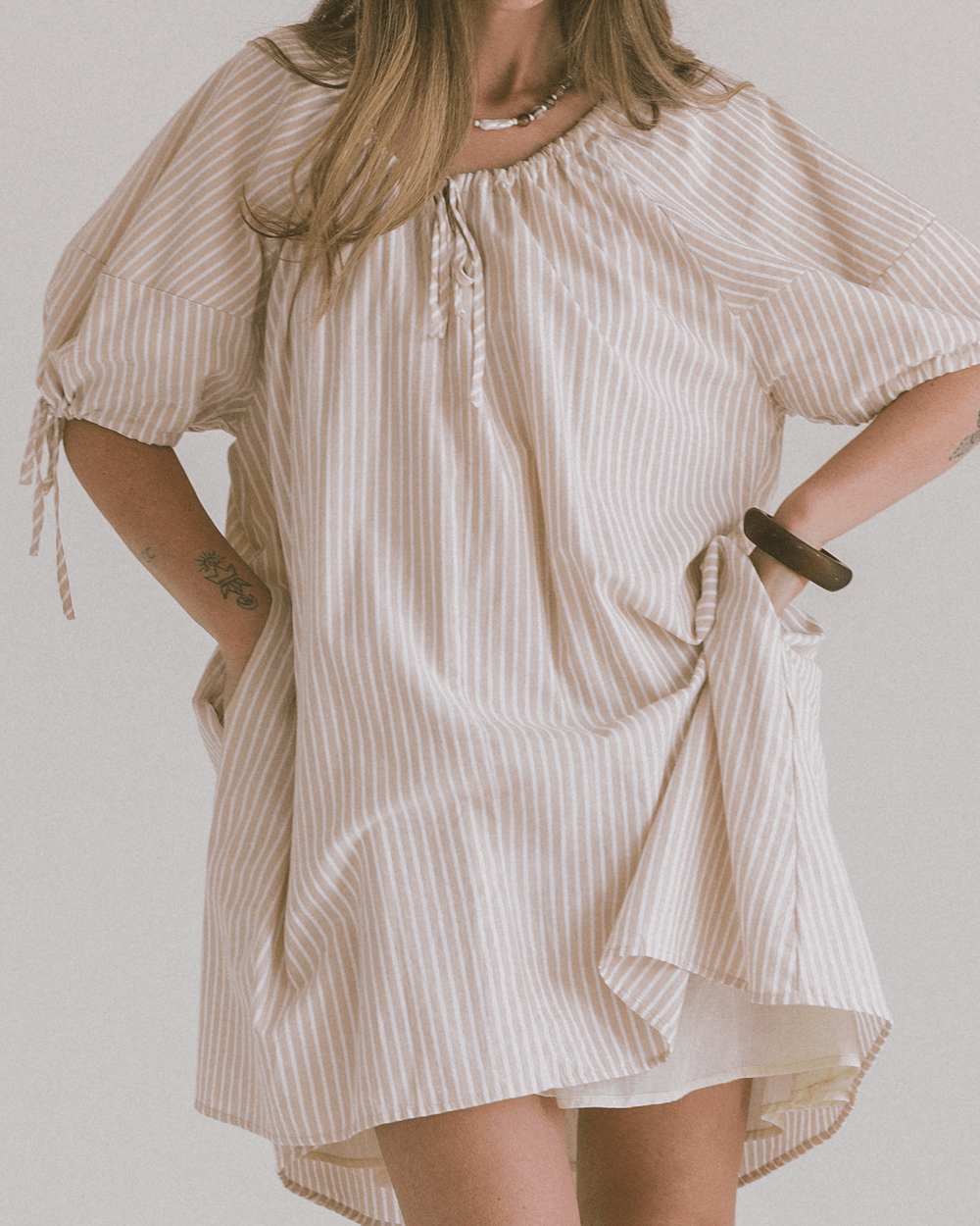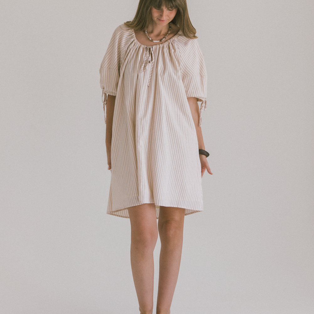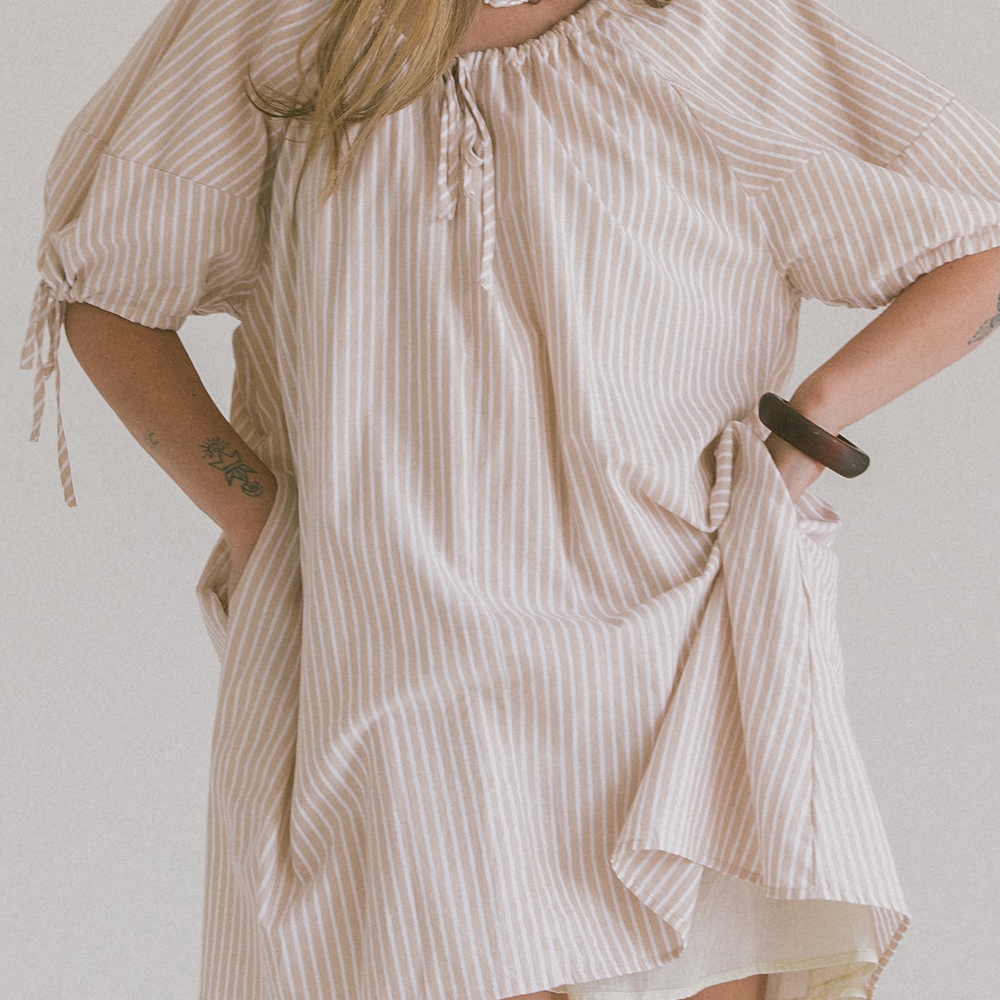 Harvey Mini Dress | Beige Stripe