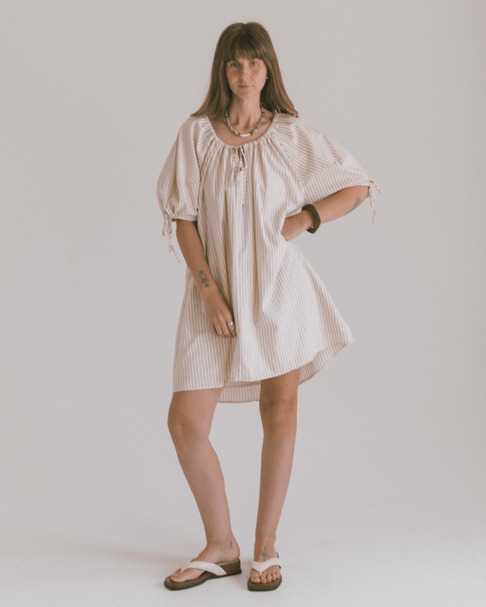 The Harvey Mini Dress is designed with an easy, relaxed silhouette that makes her an instant throw-on favourite. With her adjustable drawstring neckline and breathable cotton fabric, Harvey is equal parts playful and practical, moving with you through busy days and carefree nights.