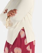 The boat neckline creates a flattering, open shape through the shoulders, while the asymmetrical cut out detail adds subtle shape and visual interest without feeling revealing. It is thoughtfully placed to give definition through the waist and elevate a classic long sleeve.