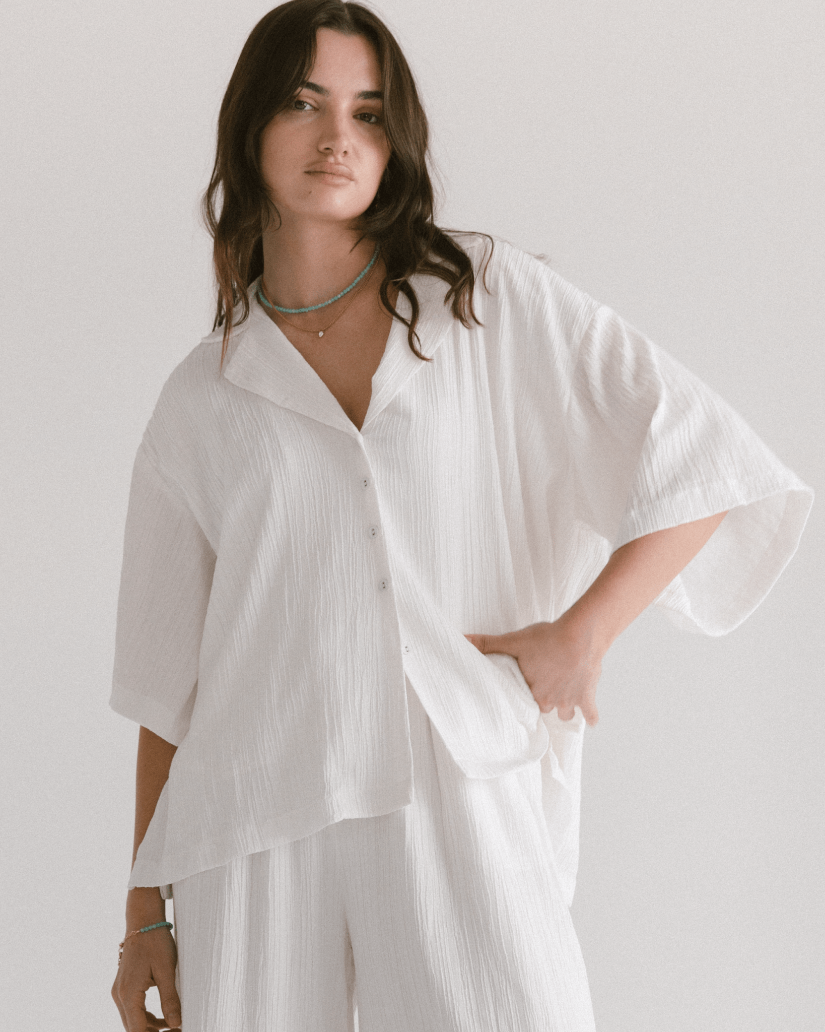 Meet your new forever favourite: the Lacey Shirt. You know the girl in high school that was cool without trying to be? This is her. Oversized, drapey in all the right places, and easy to throw on – it’s giving main character with minimal effort.