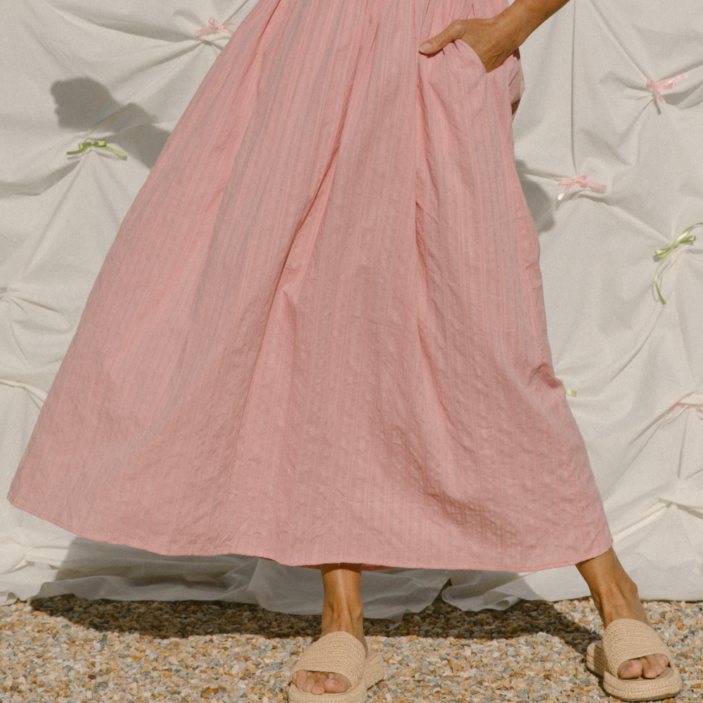 Your Layla Maxi Dress in Pink Breeze is floaty, comfy, and made to keep up with your “weekend energy” every day of the week. Here’s how to keep her looking fresh: