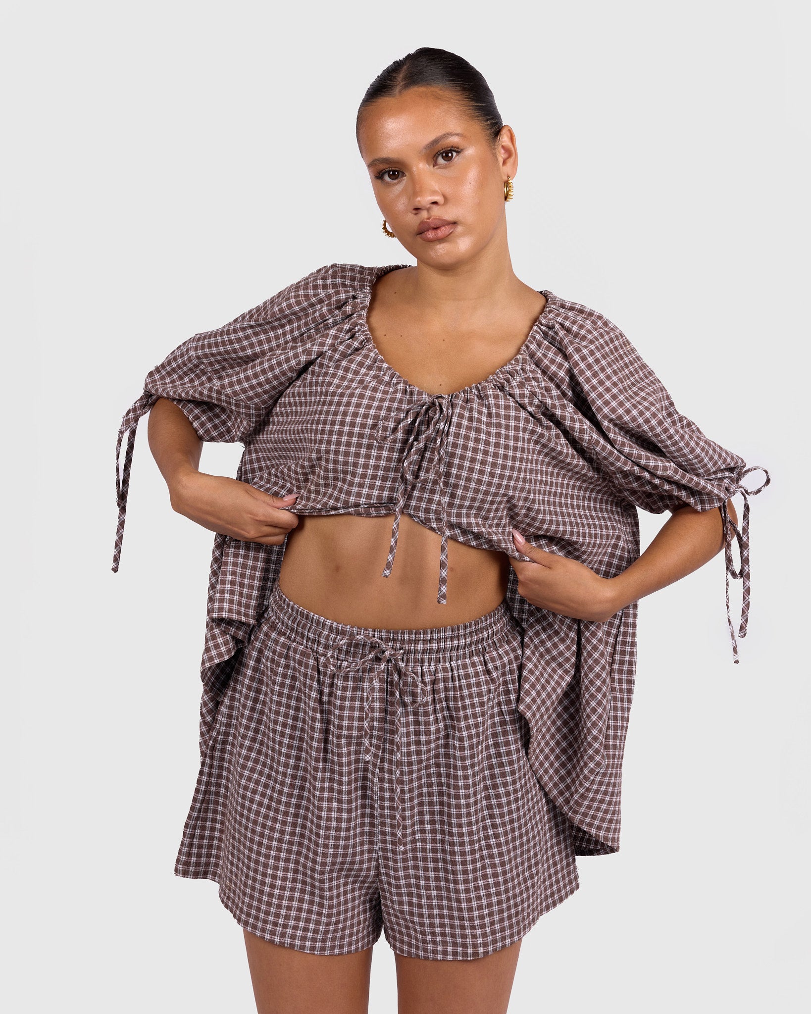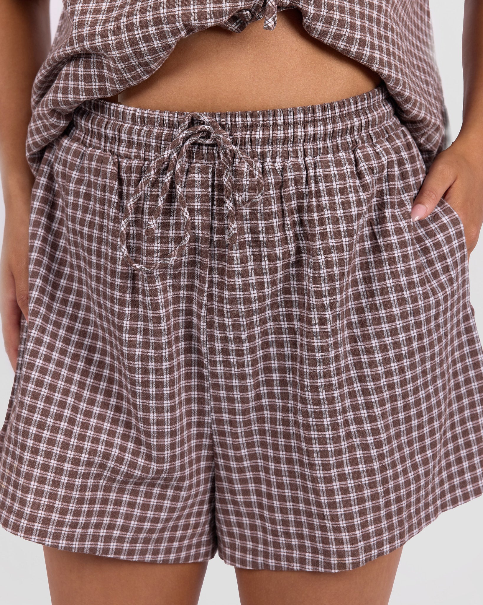 The walnut gingham print brings a rich, earthy vibe that pairs effortlessly with your wardrobe. Whether you’re styling them with a matching top or throwing them on with a simple tee, these are the kind of shorts you will keep reaching for.