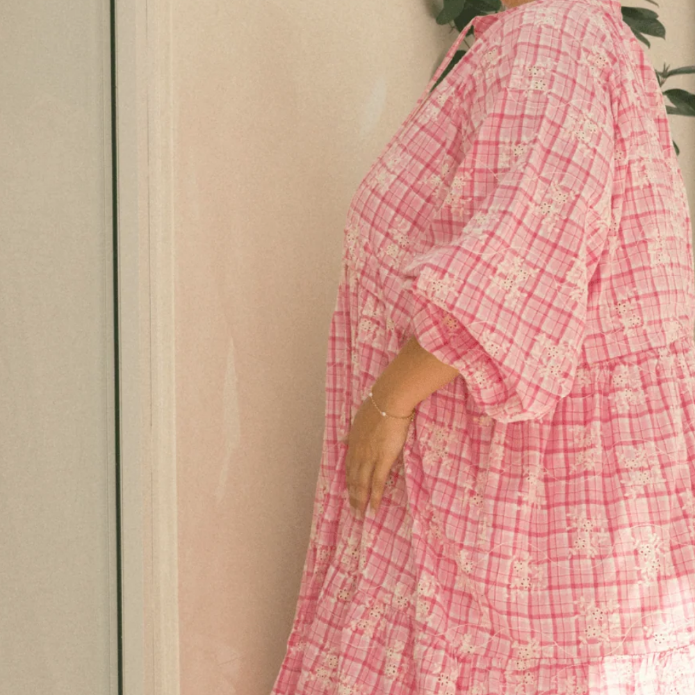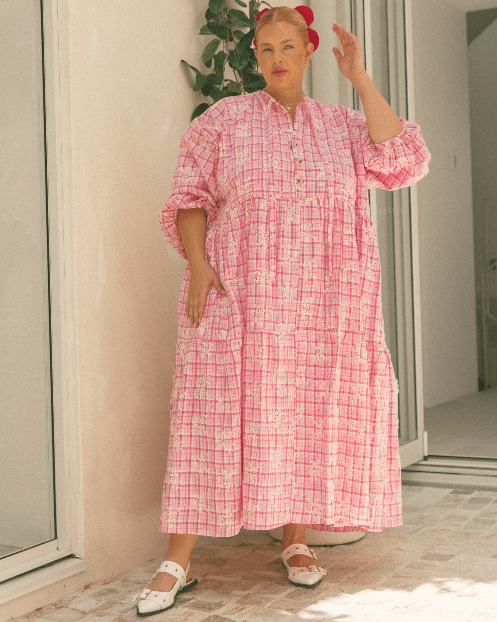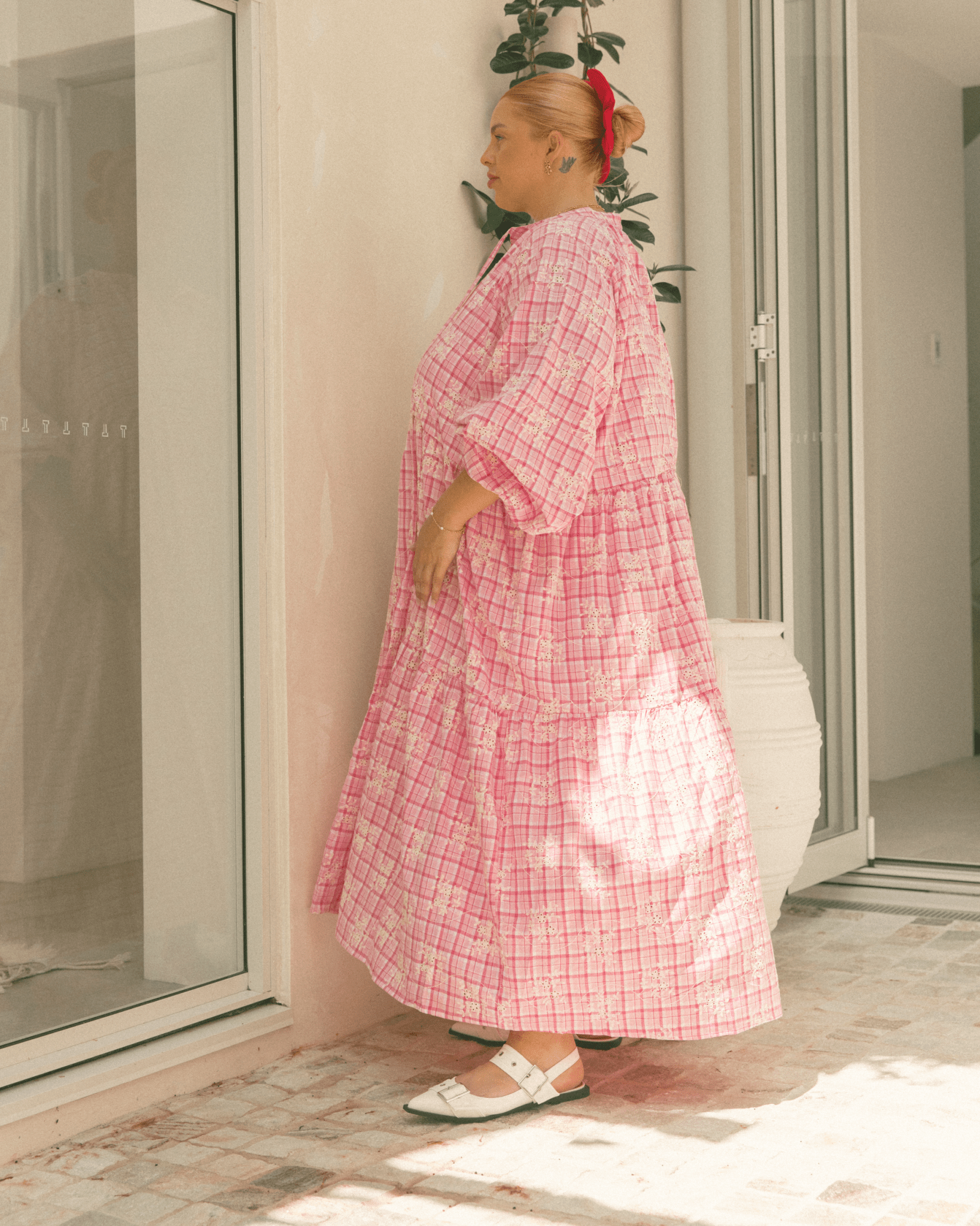 Maxi Avalon Smock Dress | Pink Gingham Embroidery
