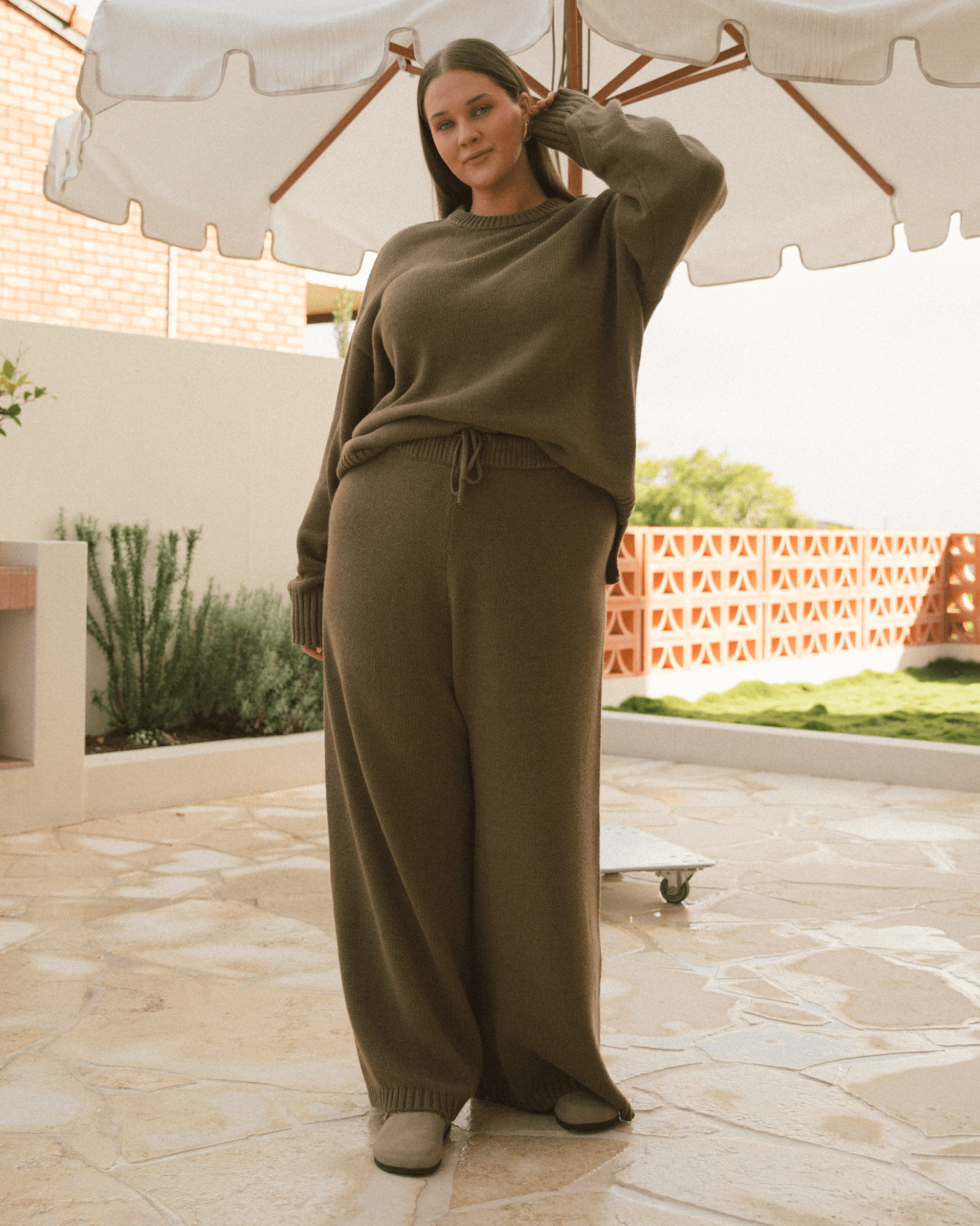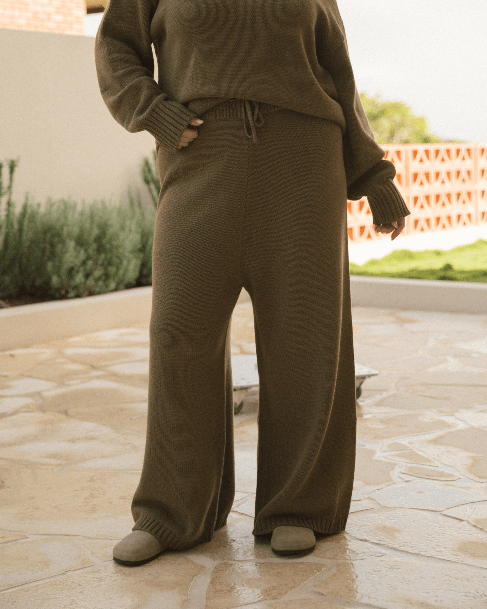 The Pearl Knit Pants are designed for maximum comfort with a flattering, laid-back silhouette. Featuring a relaxed wide-leg fit, these pants flow softly over the body without clinging, creating a beautifully balanced shape that works for every figure.