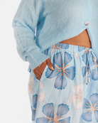 The exclusive Daydream print features oversized hand drawn blue florals scattered across a soft baby blue base. With deeper blue tones and soft neutral highlights through the petals, this print feels fresh, calm, and easy to style all year round.