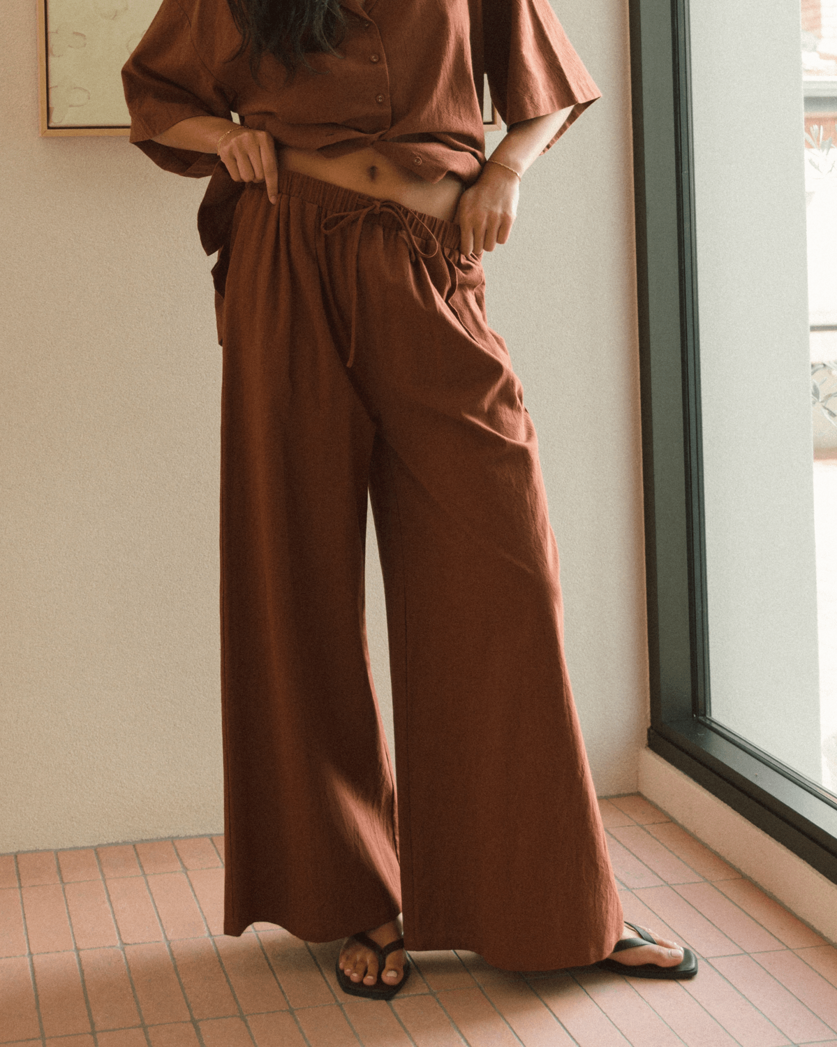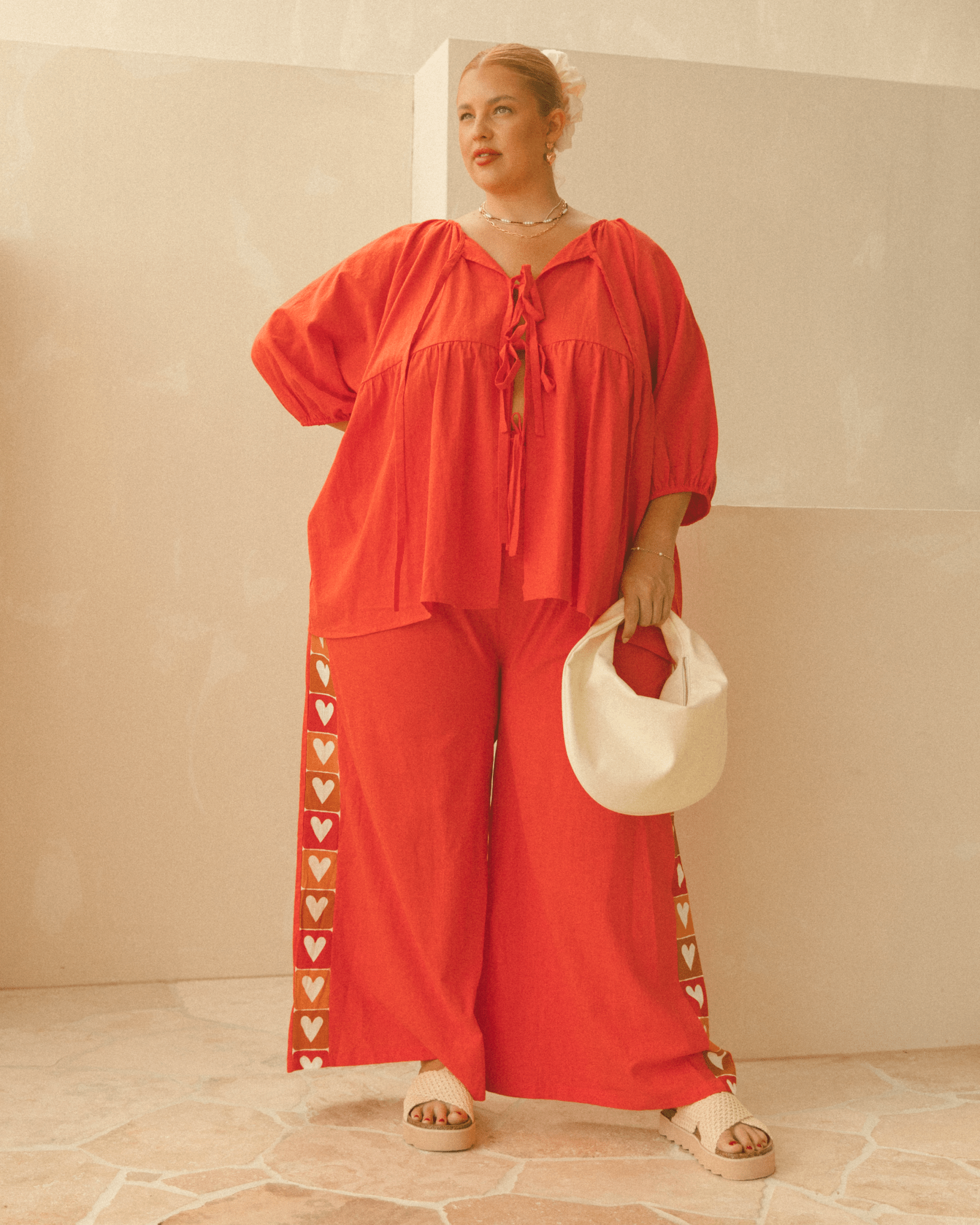 Comfort, but make it cute. Our Posey Pants are basically your new uniform for everything from couch hangs to cocktails. With their oversized, flowy fit and breezy fabric, these pants are ready to take you from bed to beach to “oh, this old thing?” brunch plans without breaking a sweat.