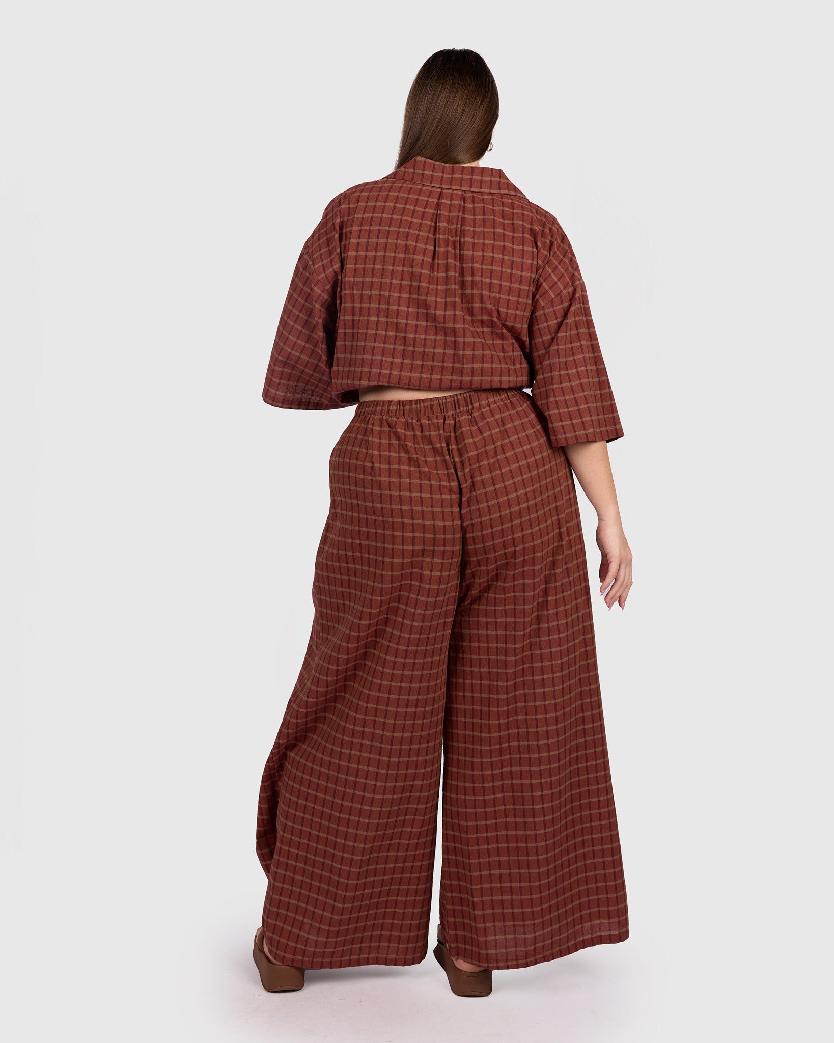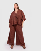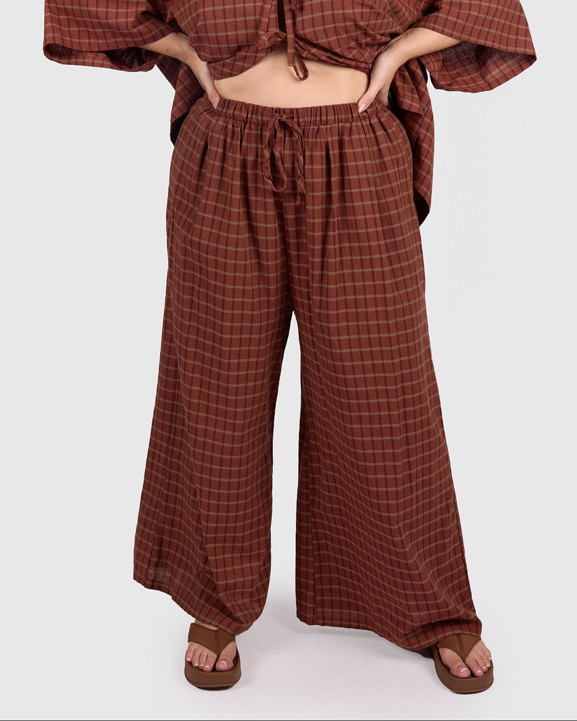 The Posey Pants in Maple Gingham are designed for everyday comfort without compromising on style. Made from 100% breathable cotton, they are lightweight, airy, and feel soft against the skin, perfect for all-day wear.