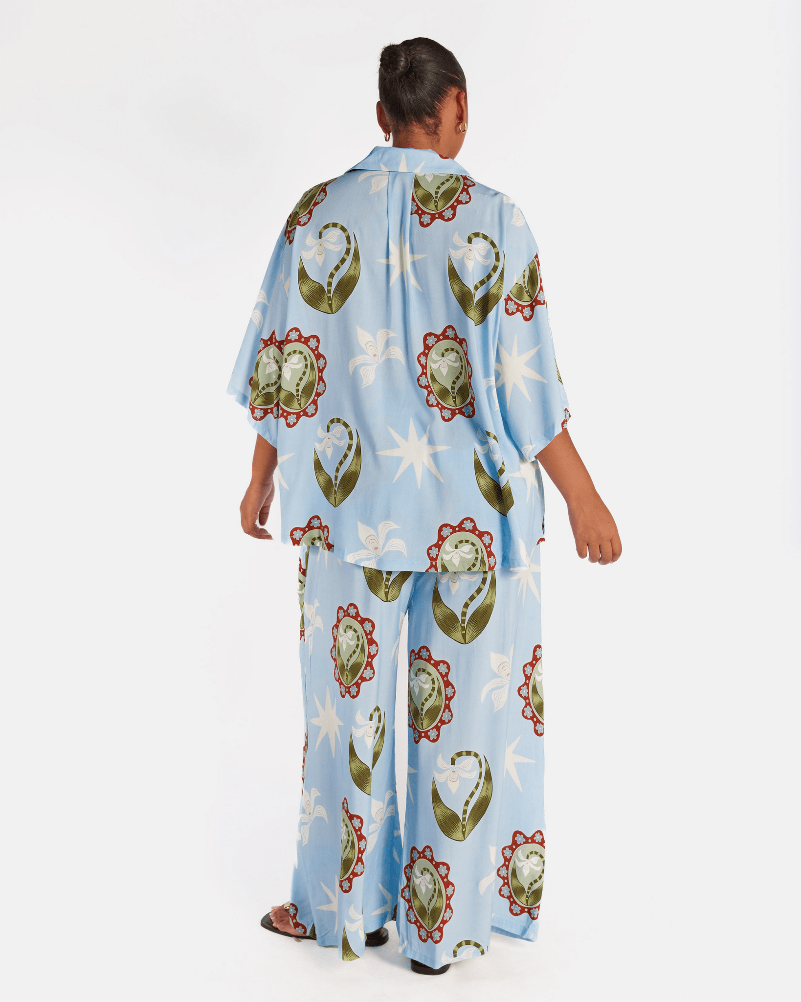 The Posey Pants in Moon Flower are soft, floaty and seriously comfy, made from drapey 100% rayon with an easy elastic waist and pockets. Featuring an art led floral and star print, they are the kind of pants you throw on once and never want to take off.
