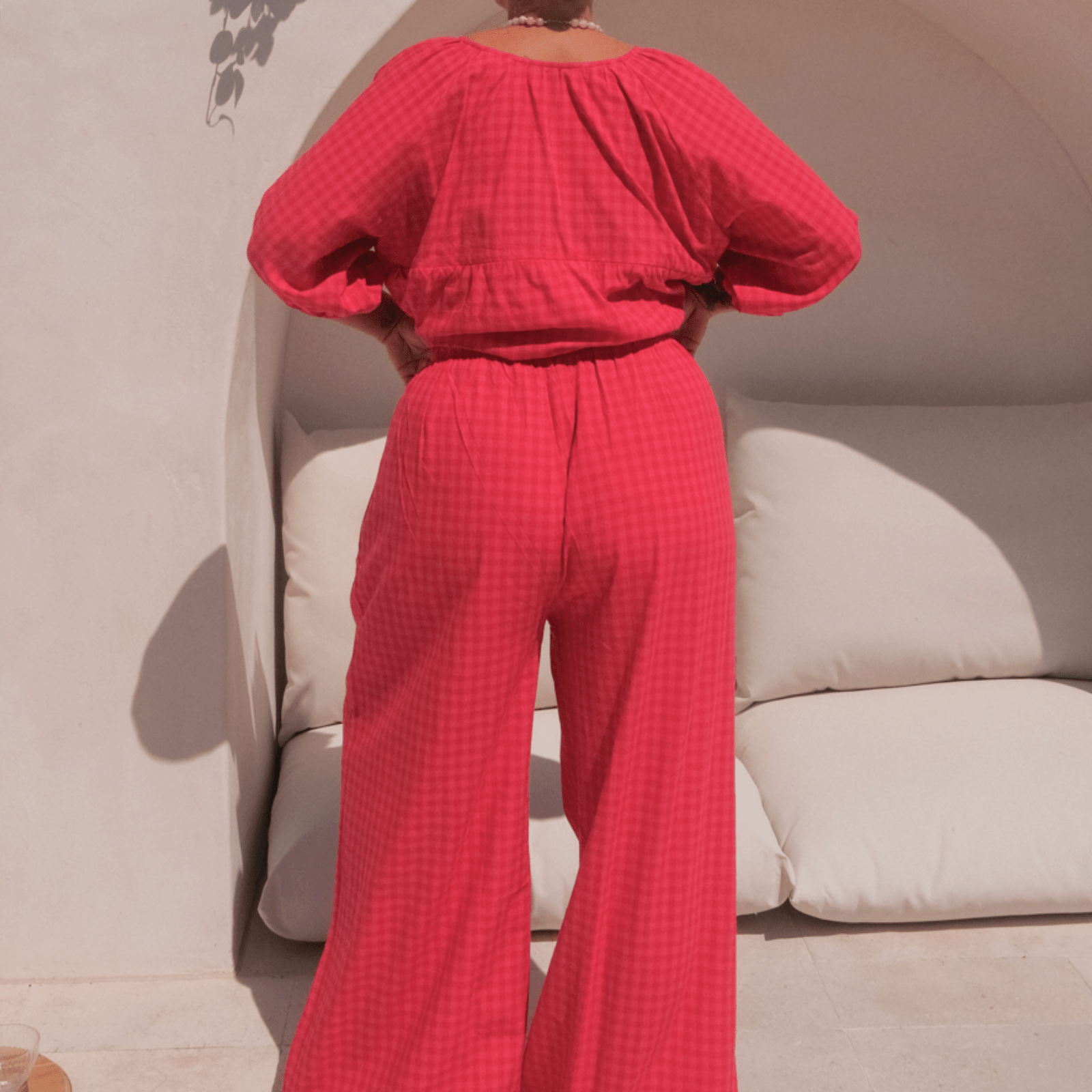Comfort, but make it cute. Our Posey Pants are basically your new uniform for everything from couch hangs to cocktails. With their oversized, flowy fit and breezy fabric, these pants are ready to take you from bed to beach to “oh, this old thing?” brunch plans without breaking a sweat.