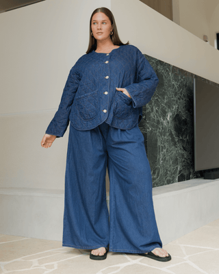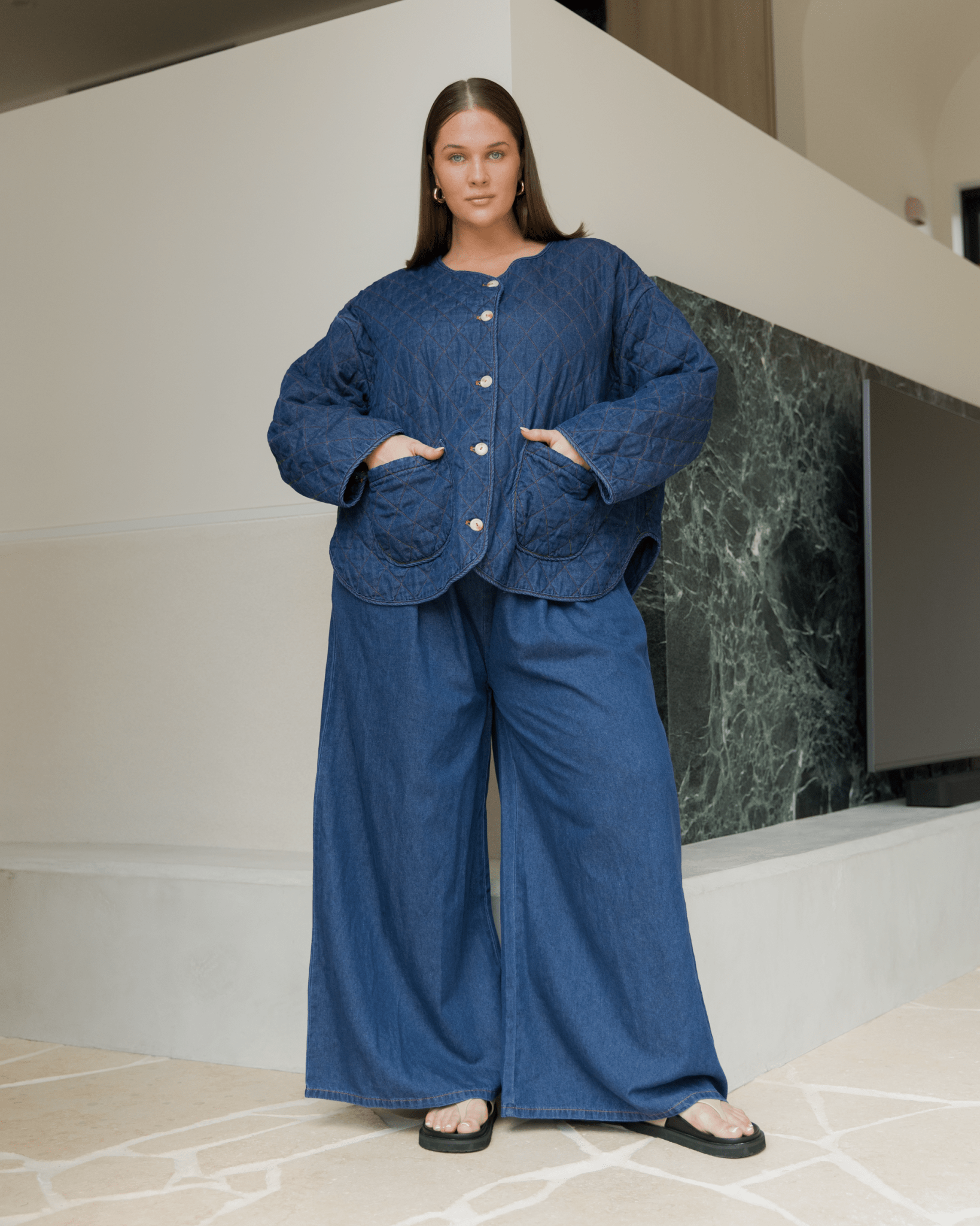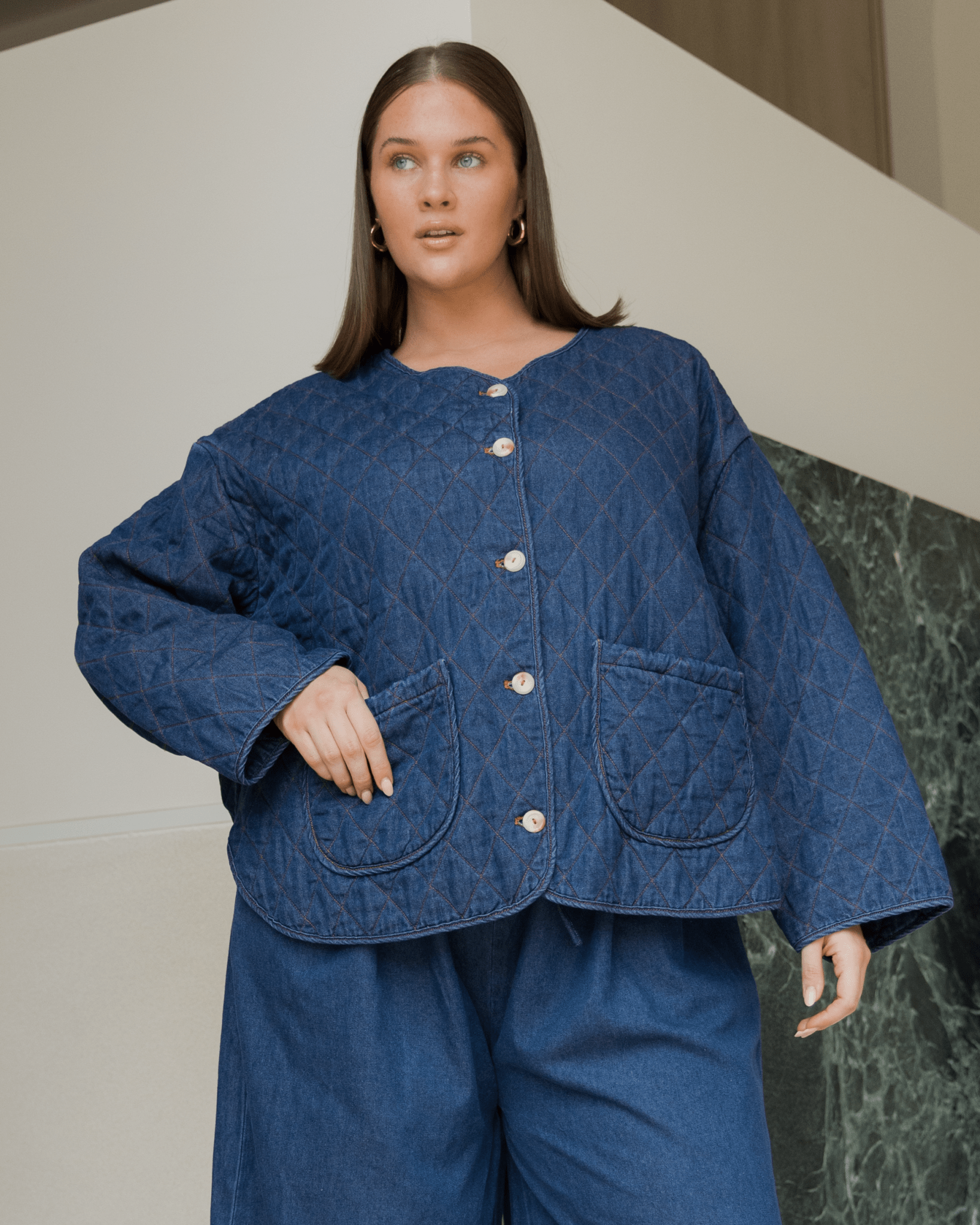 Say hello to your new throw-on-and-go favourite — our Quilted Jacket in Dark Denim. Made from 100% breathable cotton and finished in a timeless indigo wash, this oversized layer is the ultimate mix of comfort, warmth and easygoing style.